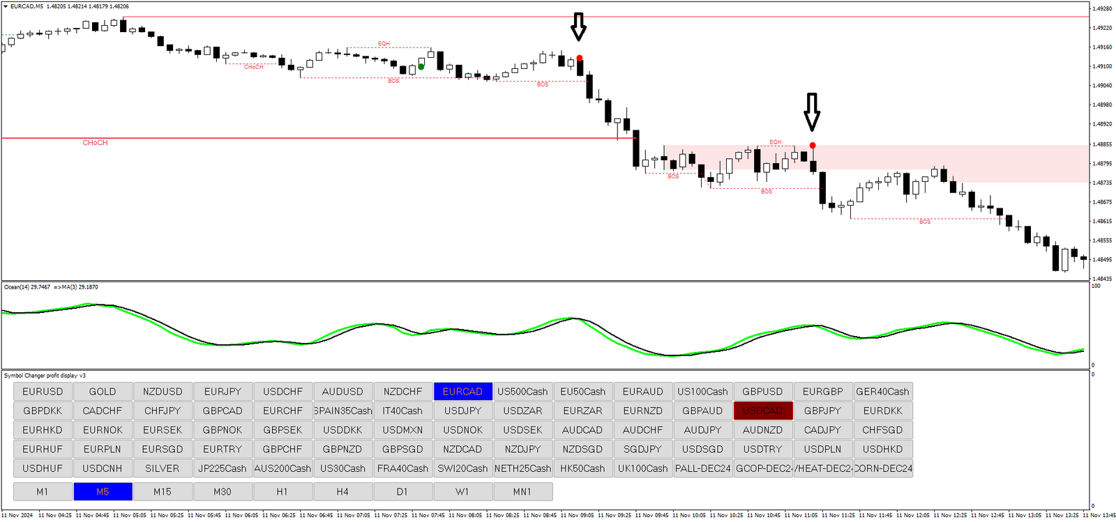 - Ponto Verde no SJ Arrow: Um ponto verde deve aparecer acima da zona de resistência identificada pelo SMC.