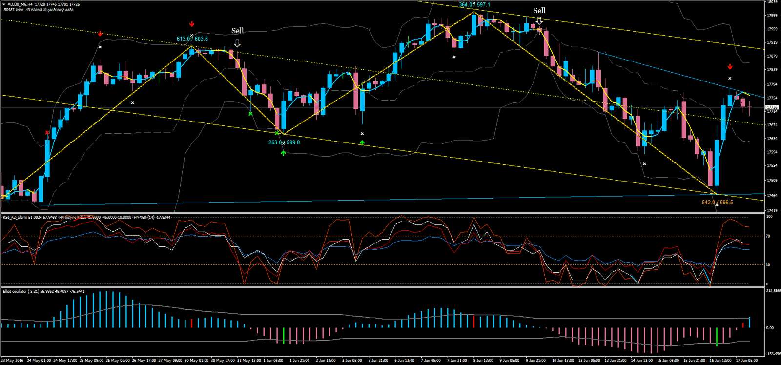 • Trendline lnx e Elliot Wave: Podem ser usados para análise adicional de tendências e padrões de mercado, mas não são essenciais para o sistema básico.